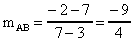 y - 7 = -2,25*(x - 3) oder