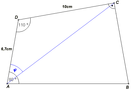 Sie das Viereck ABCD und berechnen Sie die Länge der Diagonalen [AC], sowie das Maß φ des Winkels CAD.