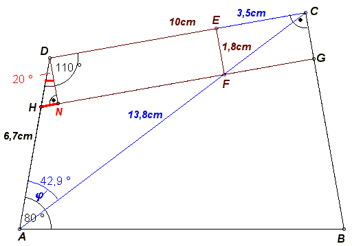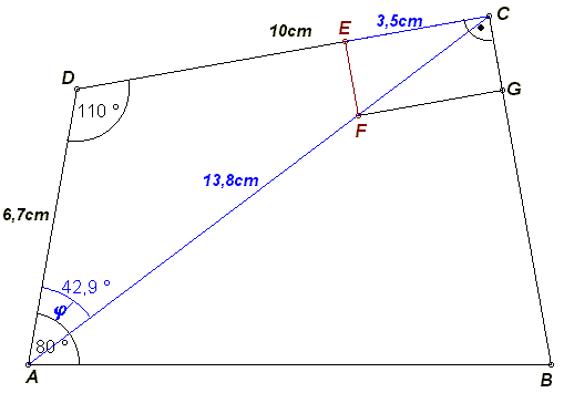 [Teilergebnisse: AC = 13,8cm ; φ = 42,9°]