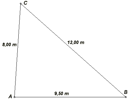 cosα = 9,502 + 8,002 - 12,002/2 · 9,50 · 8,00 ⇒ α = 86,13°