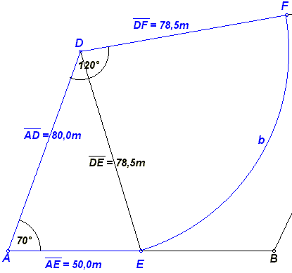 Bis auf die Bogenlänge b sind bereits alle Streckenlängen bekannt.