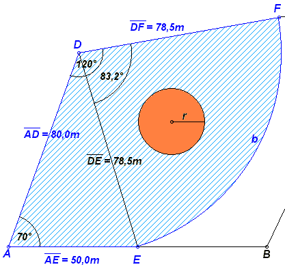 Sie den Umfang u der Seefläche. [Teilergebnis: ∡EDF = 83,2° ]
