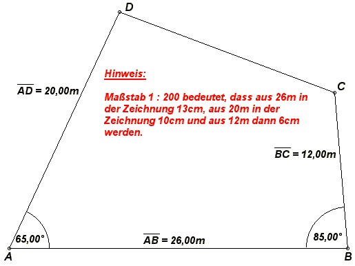 Sie das Viereck ABCD im Maßstab 1 : 200.