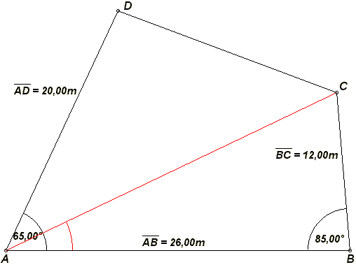 Die Grundstücksfläche hat die Form eines Vierecks ABCD.