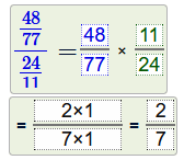Replace the complex fraction by a multiplication and reduce the result as much as possible.