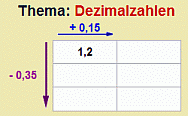 Das interaktive Arbeitsblatt beinhaltet eine Übung, bei der die Schüler Werte in einer Tabelle ergänzen sollen. Gegeben sind die Startzahl sowie die beiden Rechenvorschriften für die horizontale und vertikale Berechnung. Wird die Aufgabe fehlerhaft bearbeitet, so werden die falschen Werte rot hinterlegt und die Schüler aufgefordert, diese zu verbessern. Die Schüler haben zusätzlich die Möglichkeit, sich die Lösungen einblenden zu lassen.