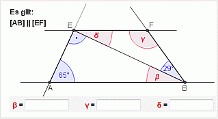 Das interaktive dynamische Arbeitsblatt beinhaltet eine Übung, bei der die Schüler drei fehlende Winkelmaße berechnen sollen. Gegeben ist dabei ein Trapez, das in zwei Dreiecke zerlegt wurde. Zur Bearbeitung der Aufgabe können sich die Schüler verschiedene Lösungshinweise einblenden lassen. Die Aufgabe selbst wird jedoch nicht abschließend gelöst.