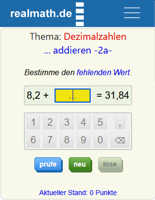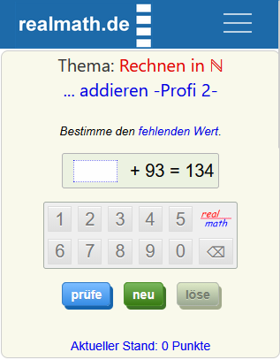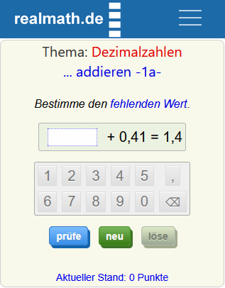 "Die Lernplattform 'realmath.de' deckt den Großteil der Inhalte des Mathematikunterrichts der Sekundarstufe 1 ab. Hier kann einfach und individuell geübt werden. In übersichtlicher Form sind die Inhalte des deutschen Lehrplans nach Schulstufen und Themen zusammengefasst. Nach Auswahl einer Übung kann interaktiv geübt werden." Vollständigen Artikel lesen »