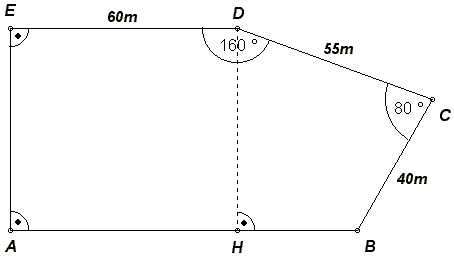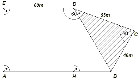 ATrapez ABDE = 0,5 · (60m + 91,6m) · 53,5m = 4055,3m2