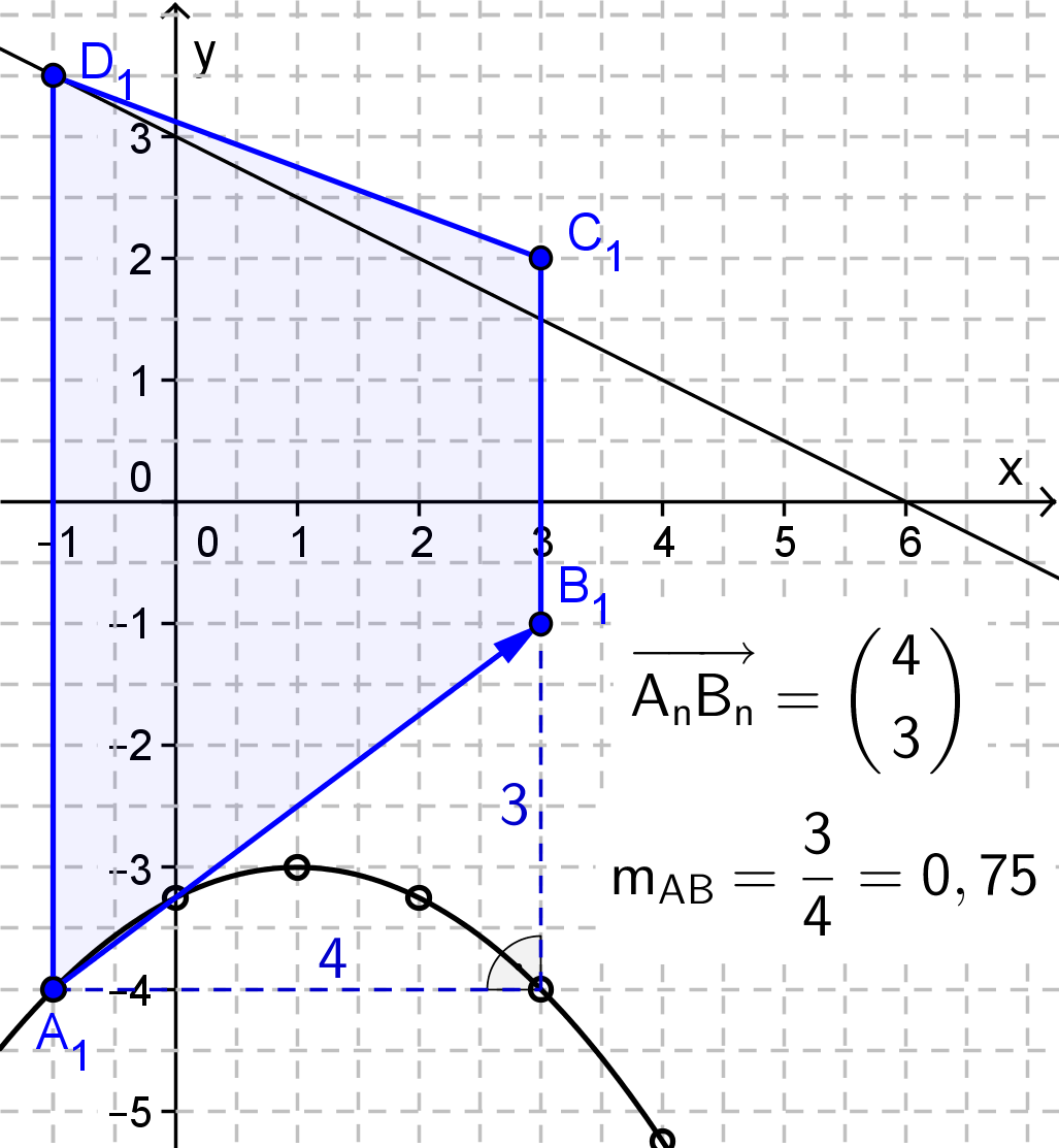 Sie rechnerisch, ob die Gerade A1B1 Tangente an die Parabel p ist. [Teilergebnis: A1B1: y = 0,75x - 3,25]
