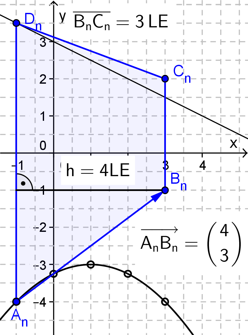 Den Flächeninhalt A(x) der Trapeze AnBnCnDn bestimmst du mit Hilfe
