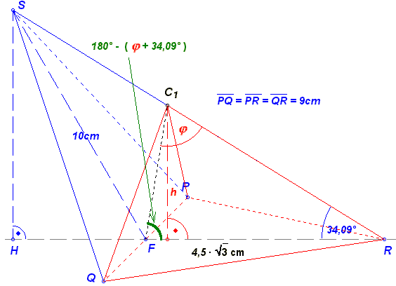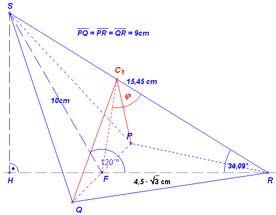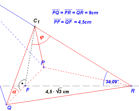 Pyramide PQRC 1 für φ = 65° (Winkel FC 1R)