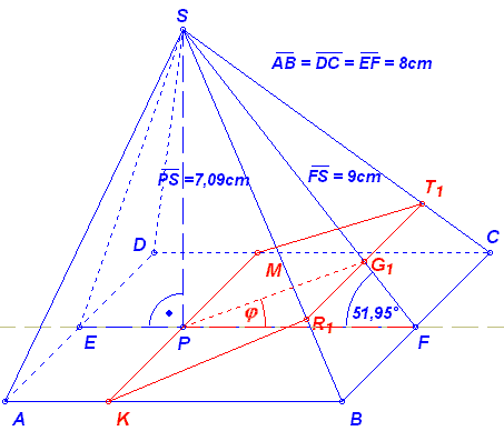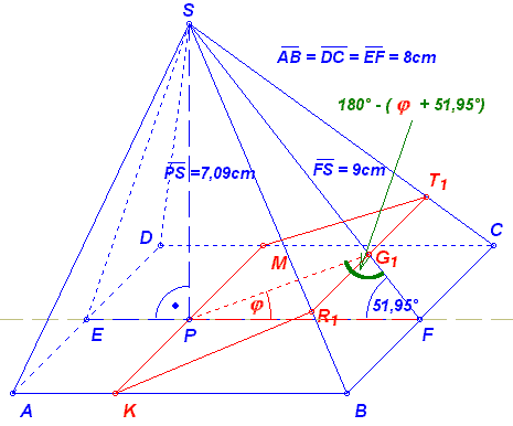 PF = 9cm · cos51,95° (vgl. Aufgabe 3.3) |