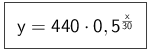 Die nachfolgende Gleichung beschreibt den Abklingprozess für eine ursprünglich vorhandene Menge von 440g radioaktivem Cäsium mit einer Halbwertszeit von 30 Jahren.