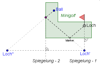 Im Arbeitsblatt ist eine Minigolfbahn mit einem Ball und einem durch eine Fahne angezeigten Loch gezeichnet.