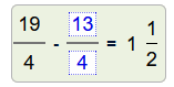 Das Ergebnis ist wenn möglich gekürzt und als gemischte Zahl angegeben.