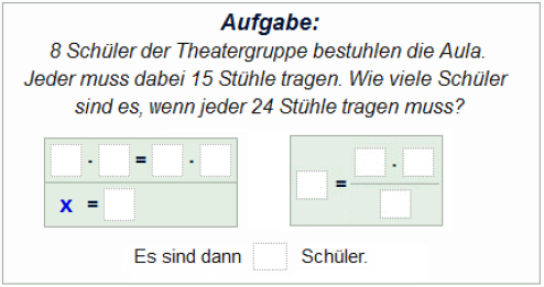 Finde die produktgleichen Zahlenpaare und erstelle den Ansatz. Erstelle den Ansatz nur für die Maßzahlen, also ohne Einheiten.