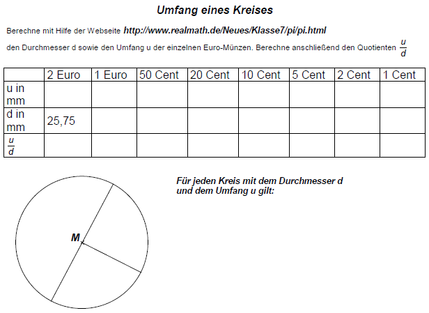 Klicke zur Berechnung des Durchmessers auf die Euro-Münze. Wähle