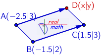 Die Koordinaten dreier Punkte eines Parallelogramms sind gegeben. Berechne die Koordinaten des fehlenden Punktes