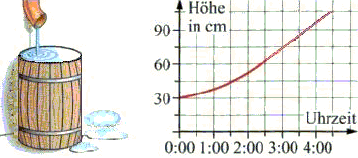 In einer Regentonne steht das Wasser um Mitternacht 30cm hoch. Dann beginnt es zu unaufhörlich zu regnen und die Regentonne ist um 04:30 Uhr bis zum Rand gefüllt.