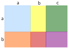 Im nebenstehendem Bild wurde ein Rechteck in sechs verschieden farbige Teilrechtecke zerlegt.