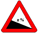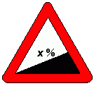 In road traffic, one encounters road signs announcing a dangerous slope or gradient.