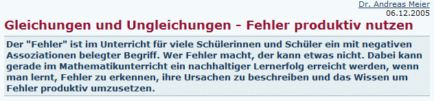 Gleichungen und Fehler als Lernchance - Lehrermaterial