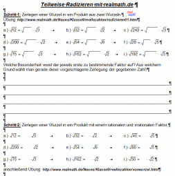 - Das pdf-Arbeitsblatt ist so angelegt, dass sich die Schüler das teilweise radizieren selbstständig aneignen können.